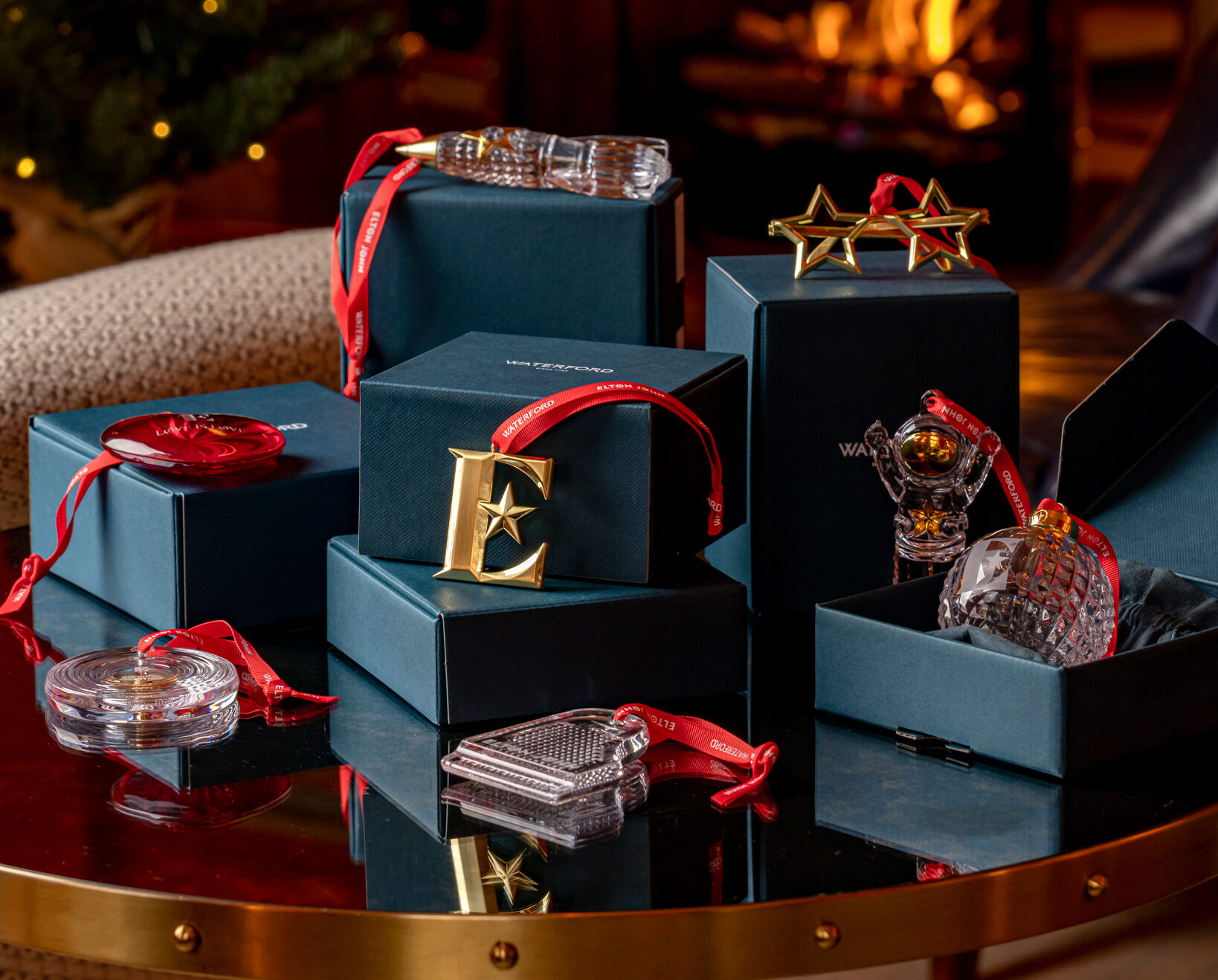 A spectacular 12-foot Christmas tree takes centre stage, adorned with hundreds of dazzling ornaments inspired by the legendary musician’s most unforgettable moments — from the fearless flight of Rocket Man to the glittering energy of the disco era. Each piece captures the artistry and brilliance for which Waterford is renowned.